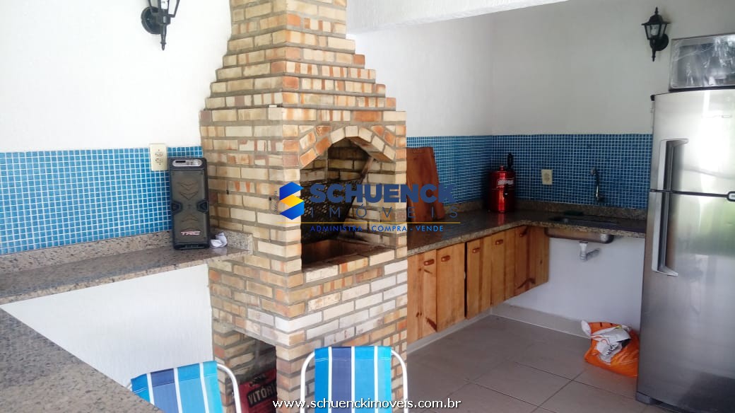 Área de lazer com piscina, churrasqueira e banheiro.